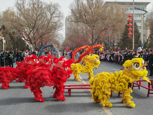 锣鼓喧天,响彻新春佳节,舞龙舞狮,舞出幸福年味。活动现场,秧歌、旱船、舞龙、舞狮、杂耍等精彩节目轮番上演,身着盛装的社火队员们个个精神抖擞,步伐妖娆,在锣鼓助阵下尽展身手。