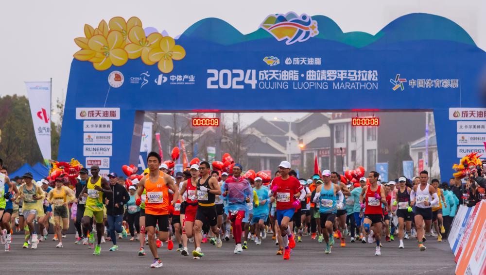 2月25日,2024曲靖罗平马拉松在云南省曲靖市罗平县体育中心鸣枪开跑