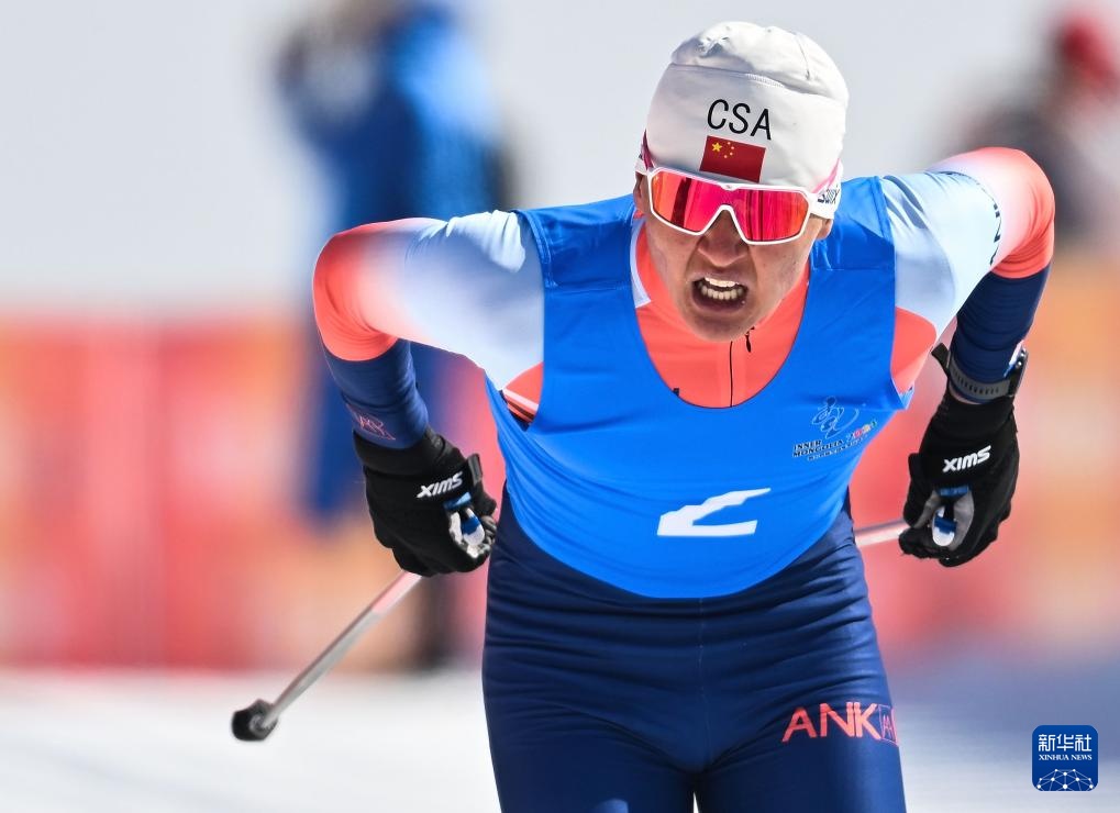 2月25日,新疆队选手赛木哈尔·赛力克在比赛中冲刺。