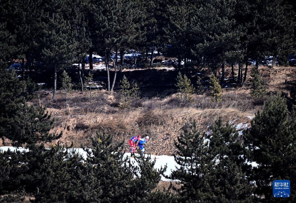 2月25日,新疆队选手赛木哈尔·赛力克(右)和吉林队选手古龙择仁在比赛中。