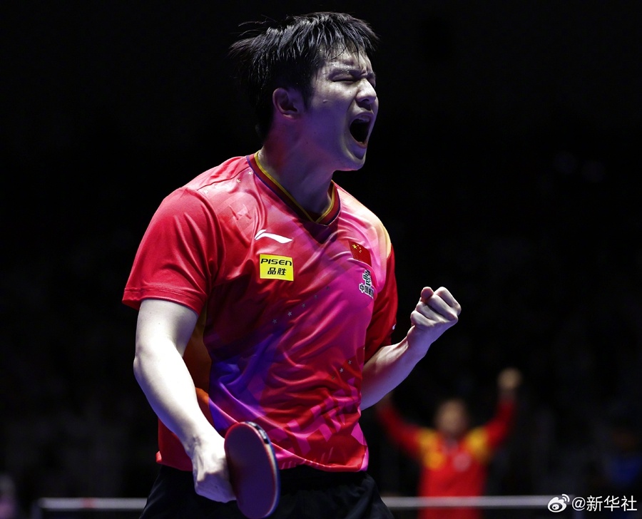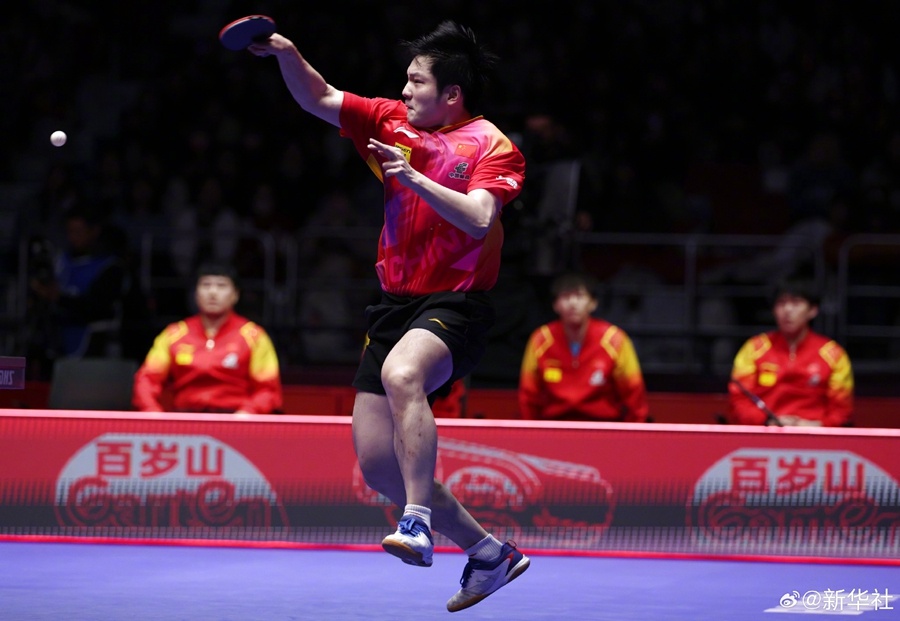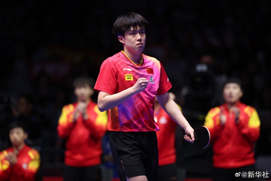 25日,釜山世乒赛团体赛男团决赛中,中国队3:0战胜法国队,实现世乒赛该项目11连冠。(记者:谭畅 陆睿 冯亚松)