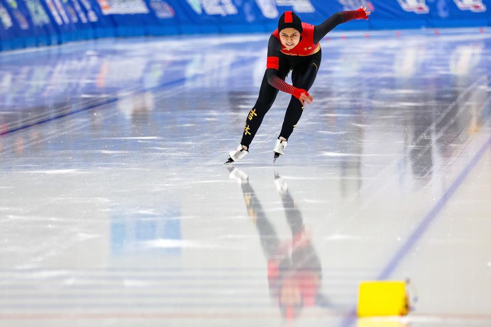 在女子1500米比赛中,该项目冬青奥会亚军、吉林队选手刘昀琪展现出良好的竞技状态,滑出1分59秒28,收获本届全冬会个人的第二枚金牌。