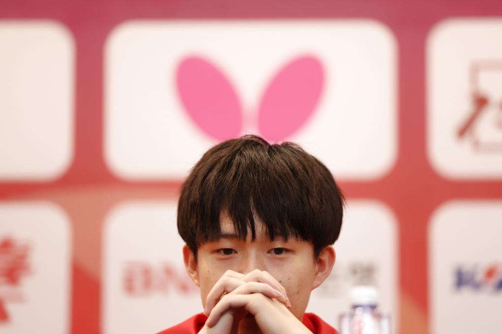 2月25日,中国队选手王楚钦出席赛后发布会。新华社记者 张涛 摄