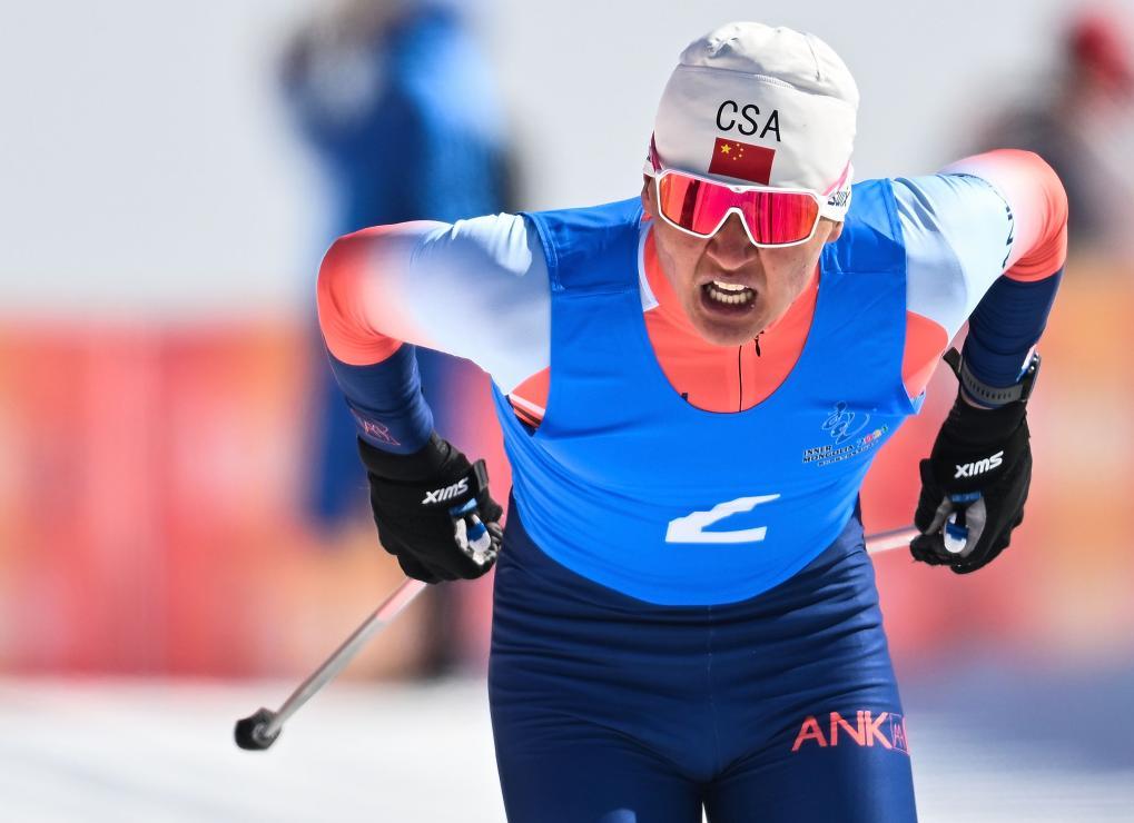 2月25日,新疆队选手赛木哈尔·赛力克在比赛中冲刺。新华社记者 刘磊 摄