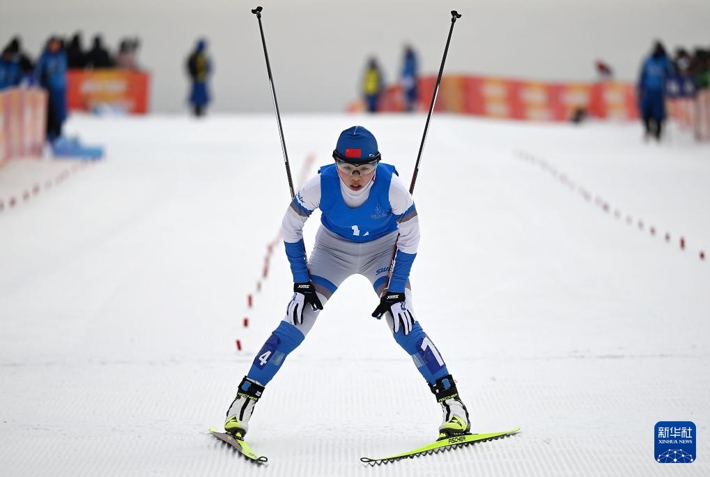 2月26日,黑龙江队选手李婕冲过终点。新华社记者 赵子硕 摄