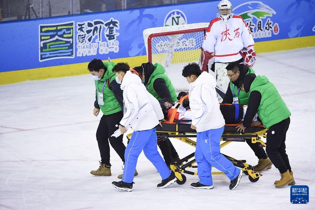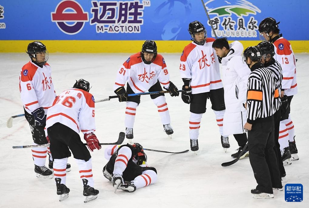 当日,在内蒙古冰上运动训练中心冰球馆举行的第十四届全国冬季运动会冰球项目男子青年组半决赛中,黑龙江队3比2战胜陕西队,晋级决赛。