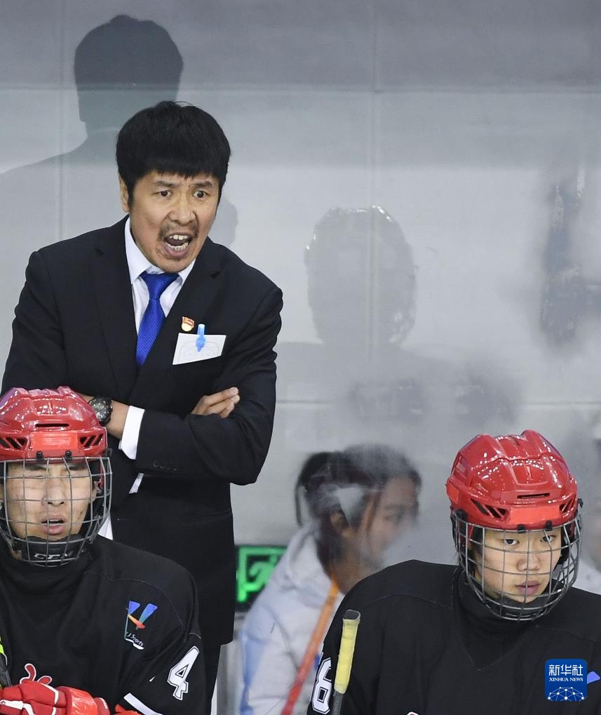 2月26日,黑龙江队主教练张海泉(上)在比赛场边指挥。新华社记者 邓华 摄