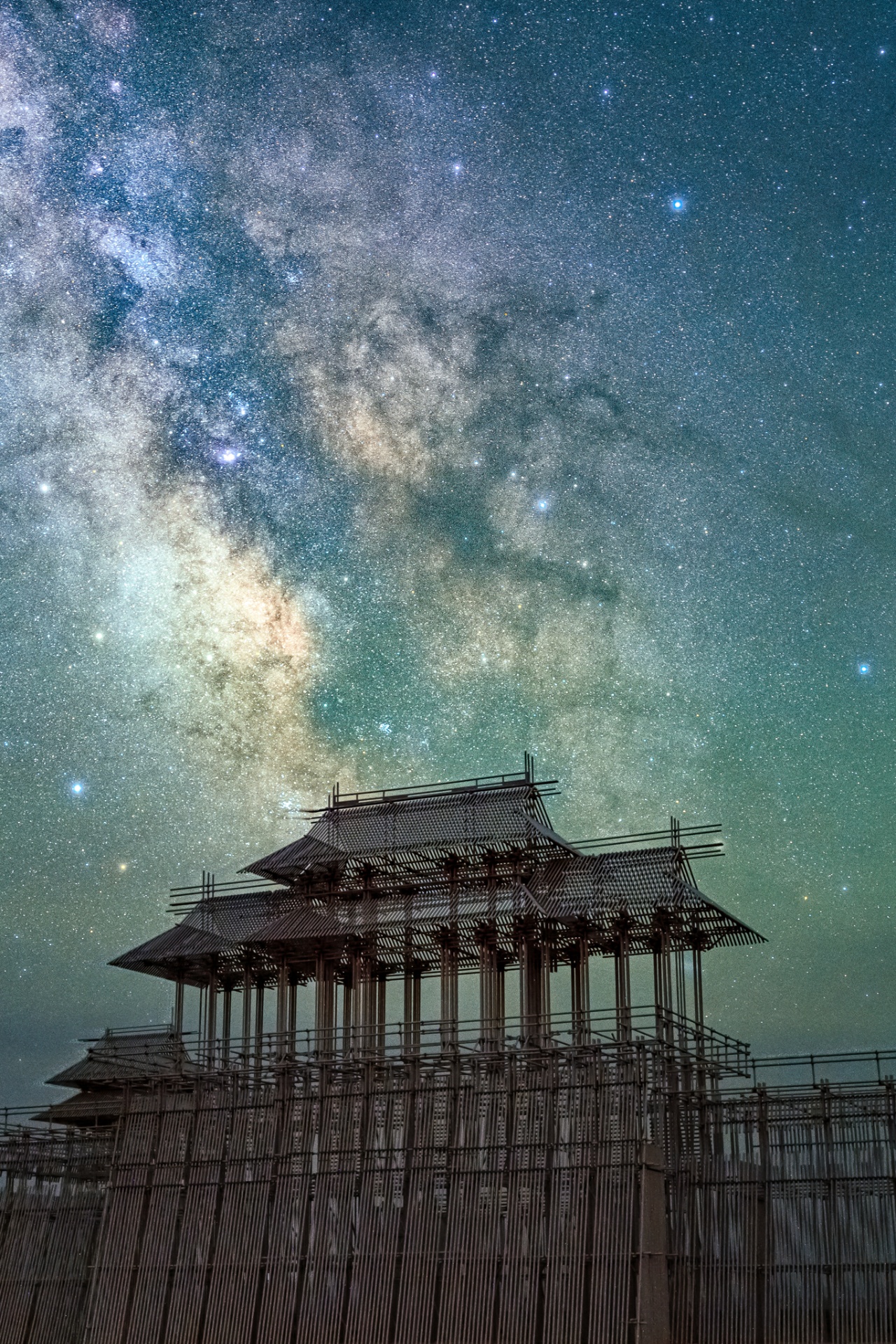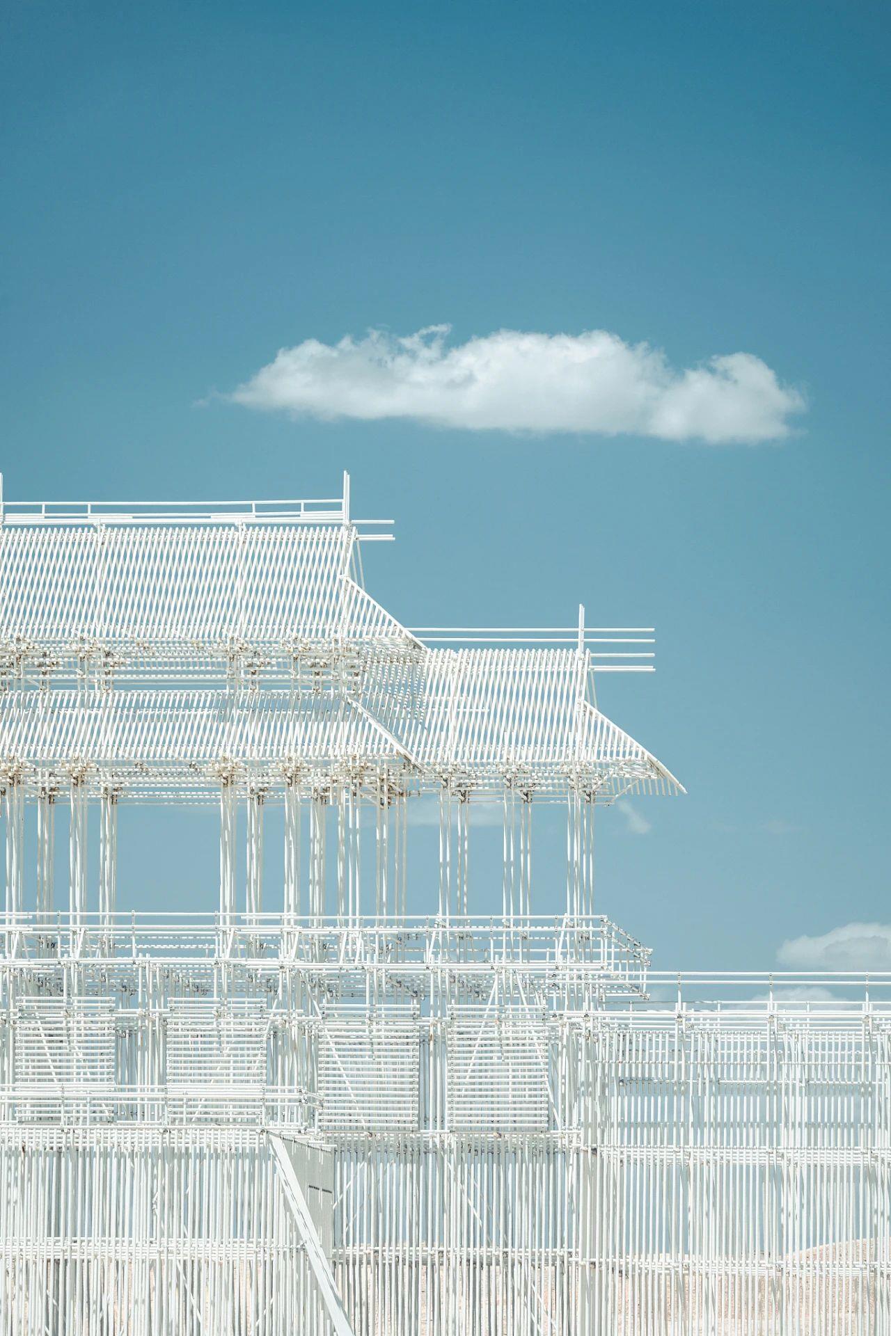 在建造时,“无界”以现代建筑材料为载体,使用了约6300根特殊定制脚手架,用约30000个扣件连接。传统与现代,在这座“海市蜃楼”上得到完美融合。