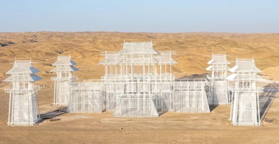 整个雕塑宛如空中楼阁,随着光线不断变化,在大漠中呈现出众多迷人的影像。