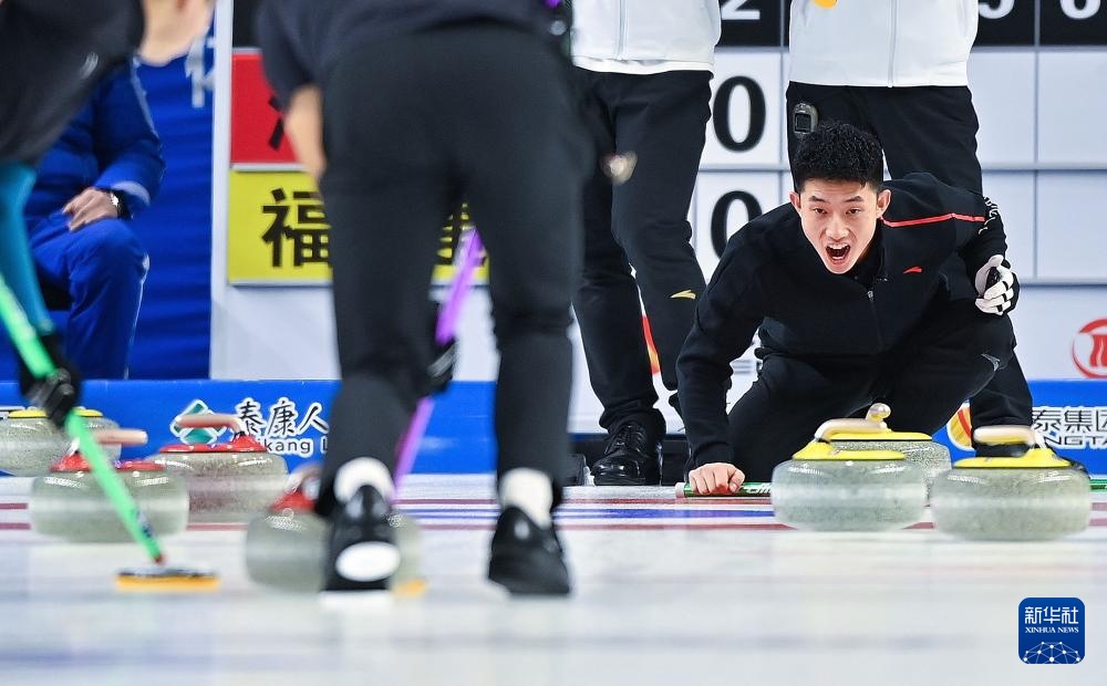 2月26日,福建队选手姜东旭在比赛中掷壶。新华社记者 杨晨光 摄