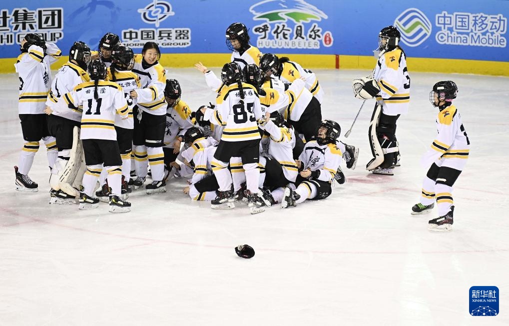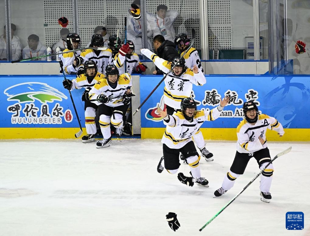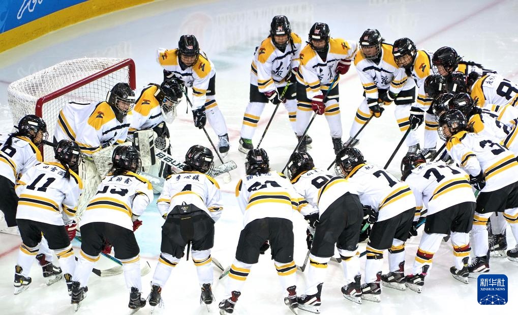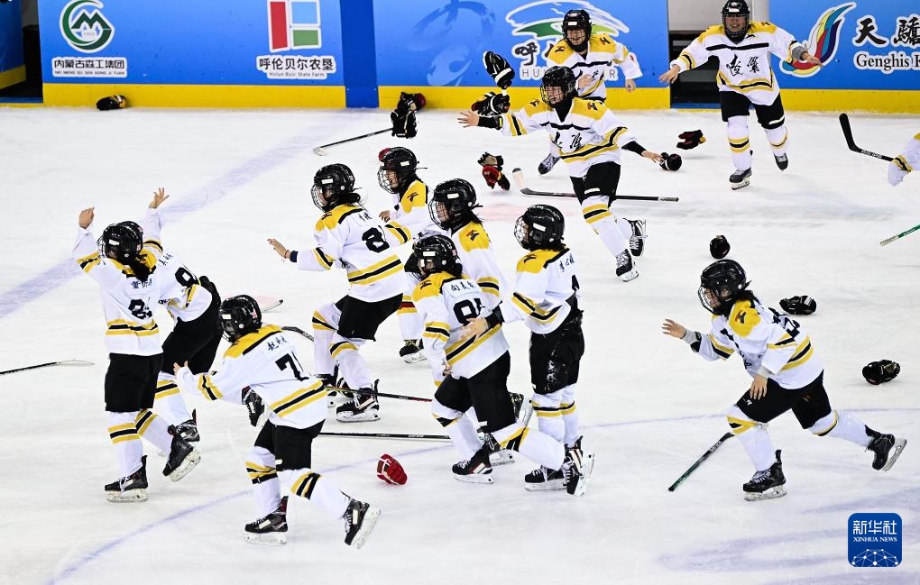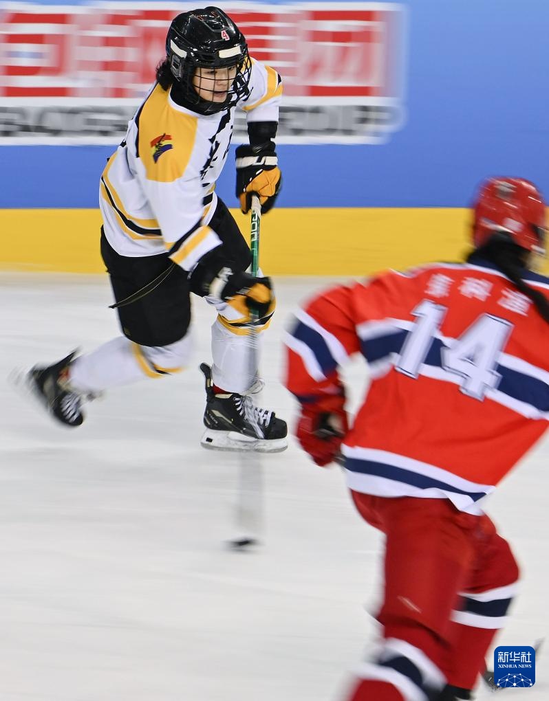 当日,在内蒙古冰上运动训练中心冰球馆举行的第十四届全国冬季运动会冰球项目女子青年组铜牌赛中,辽宁队6比0战胜河北队,获得季军。