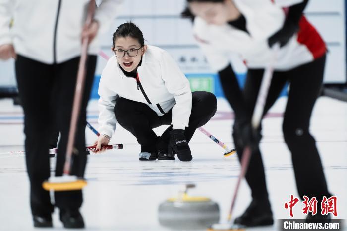 2月23日,第十四届全国冬季运动会冰壶公开组女子循环赛第4轮比赛在内蒙古呼伦贝尔进行。由王冰玉领衔的四川队以5比4的比分战胜云南队。图为王冰玉在比赛中提示队友。 中新社记者 崔楠 摄
