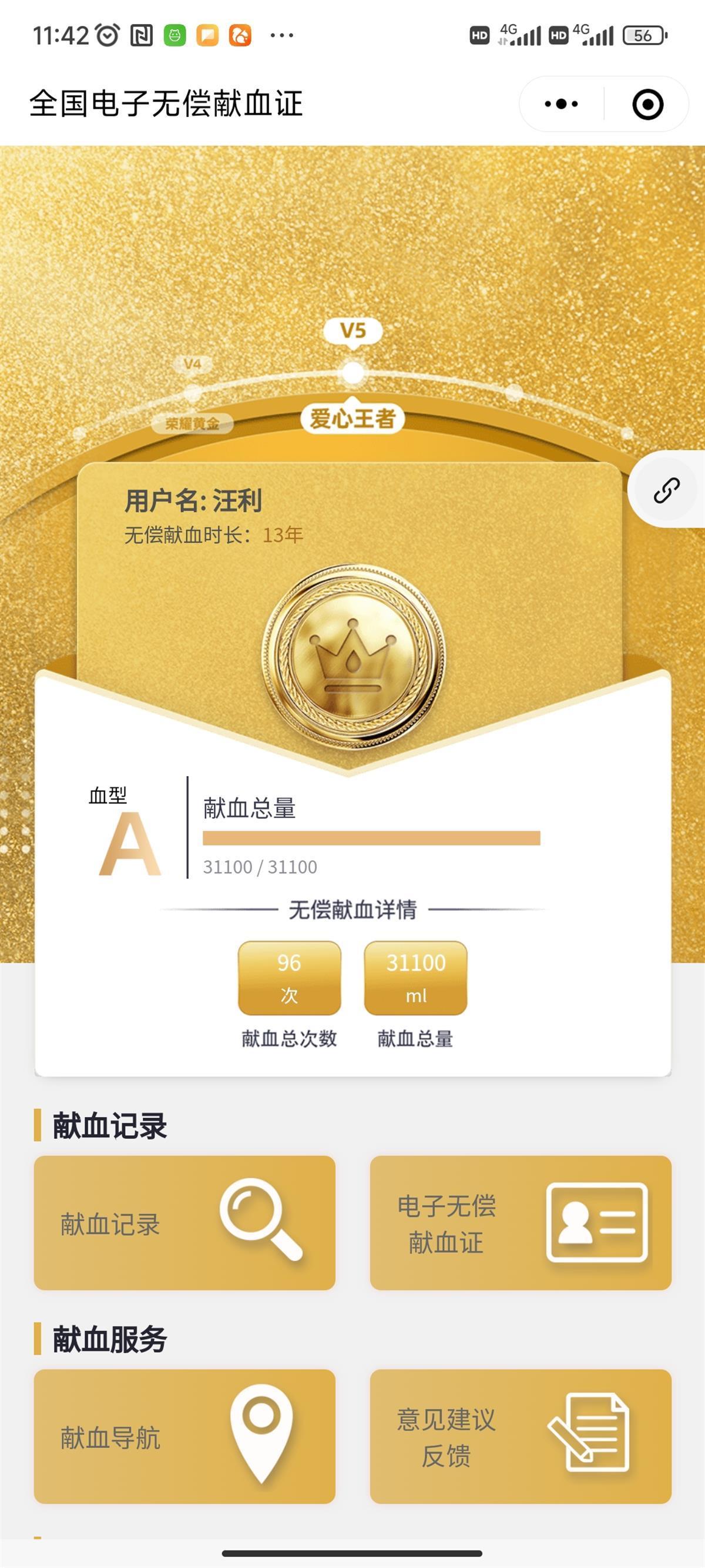 2月27日,恩施州建始县官店镇年轻干部汪利又一次献上了400毫升的全血。这是汪利的第96次献血,据其电子无偿献血证显示,截至目前,他已献血31100毫升。
