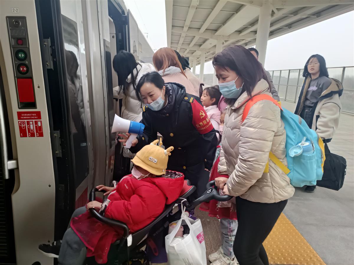 “谷城北站虽说是汉十高铁上一个三等小站,春运的时候高峰期一天发送多达4000多人次。在时间紧,旅客多的情况下,我们提前预想,根据实际情况制定‘一车一案’,统筹人员安排,合理分布候车区域,优化候进检流程,做好站台宣传引导,强化乘降秩序,这样才能做到万无一失。”副站长王晶说。