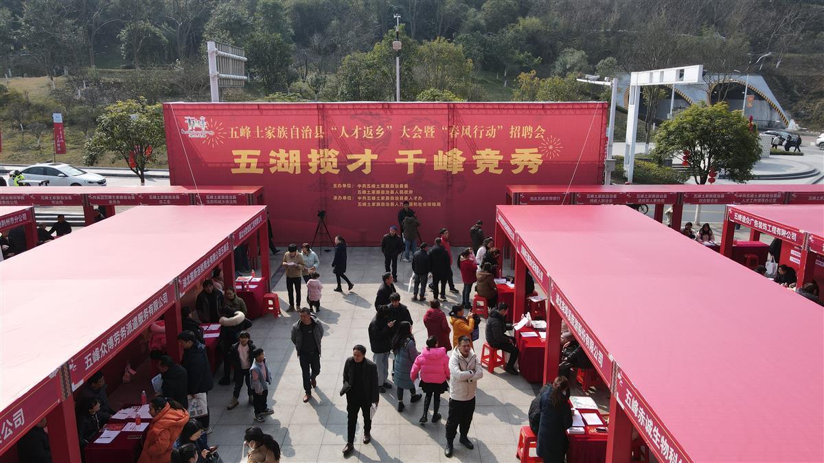 2月27日,湖北五峰举办“人才返乡”大会暨“春风行动”活动,现场宣讲五峰最新引人聚人政策,征集88家企业发布4406个岗位,吸引各方英才到五峰创业就业,为创建全国“两山”实践创新示范县集聚人气、汇聚人才、凝聚力量。