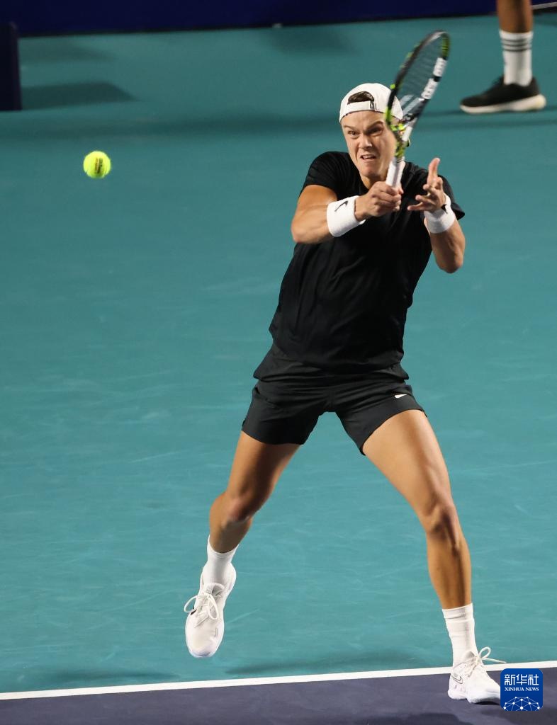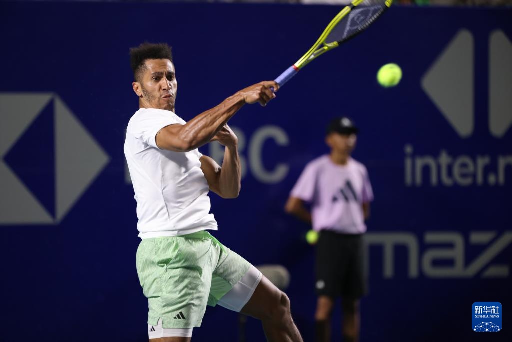 2月27日,美国选手迈克尔·莫在比赛中回球。新华社记者 李梦馨 摄