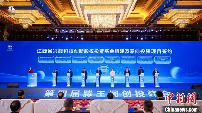 图为28日,江西省兴赣科技创新股权投资基金在第四届滕王阁创投峰会上完成合伙人合作签约。江西省科技厅供图