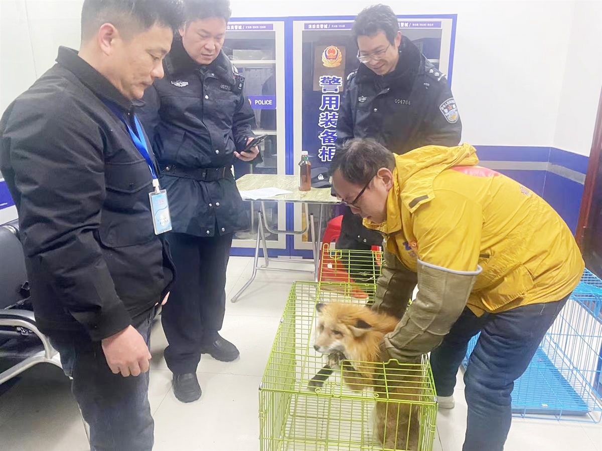 在大家的围堵下,民辅警用携带的装备将这只动物逮住,并关进一只笼子里带回了派出所。随后,卫欢联系到了大冶市陆生野生动物收容救助站工作人员。当该站工作人员赶到派出所后,经辨认,这是一只野生的成年赤狐,属于国家二级保护动物。经过检查,这只赤狐除了有些虚弱外,并没有发现身体有伤。