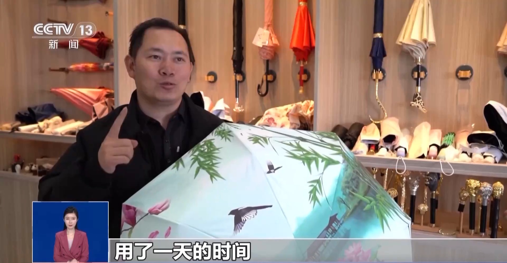 10多分钟后,这张富有江南韵味的图片就被设计到了伞面上。