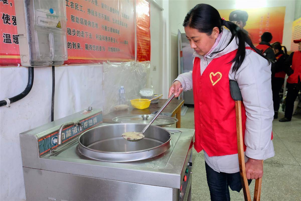 2016年,左腿残疾的方丹,拄着单拐开起了宜城市第一家爱心粥铺。那一年,她35岁,上有老、下有小,收入微薄。