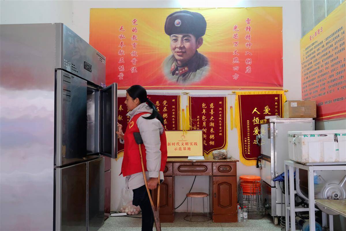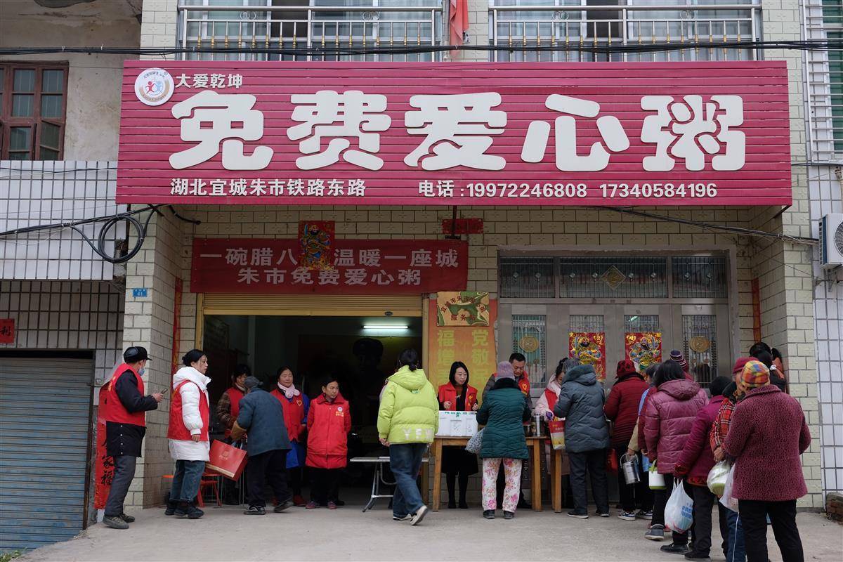 2月24日凌晨5时,宜城市小河镇朱市社区小朱路上,爱心粥铺的灯准时亮起,大厅正中雷锋画像格外显眼。