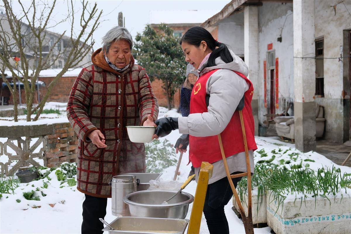 2月初,李玉秀连续两天没来粥铺。方丹打听得知——老人不慎摔伤了。她立即送去做好的饭菜。担心大雪封路,她还专门为老人准备了3天的食物。