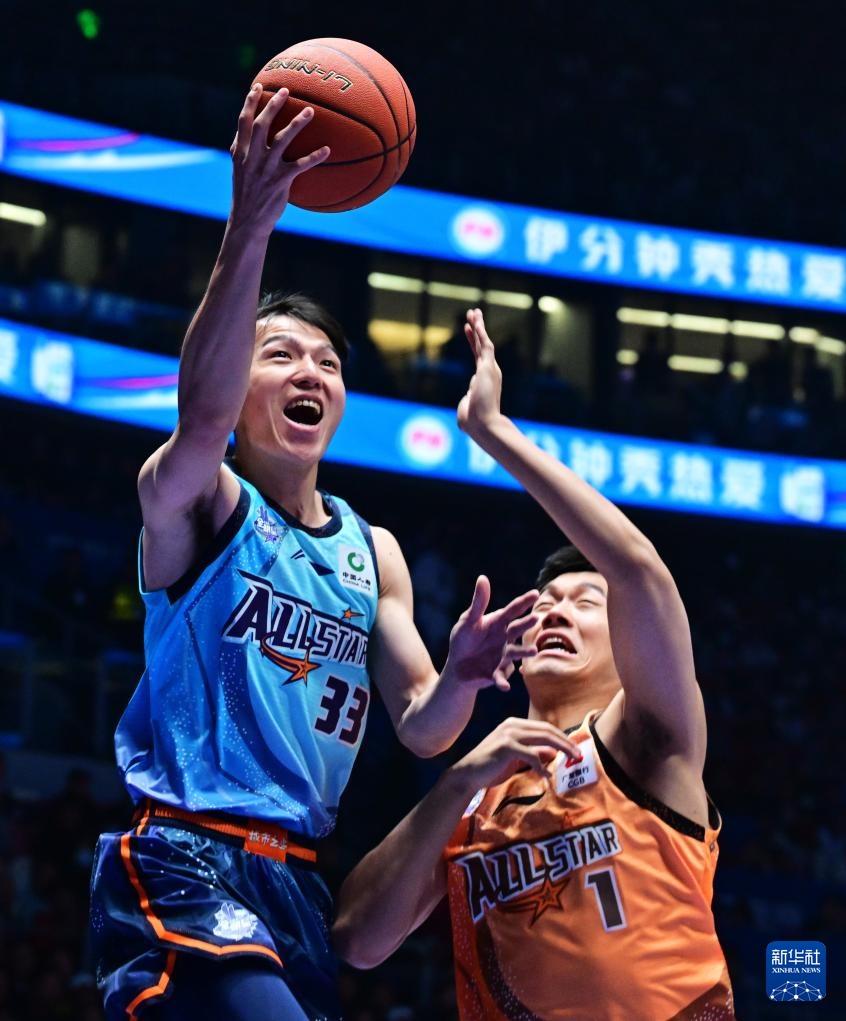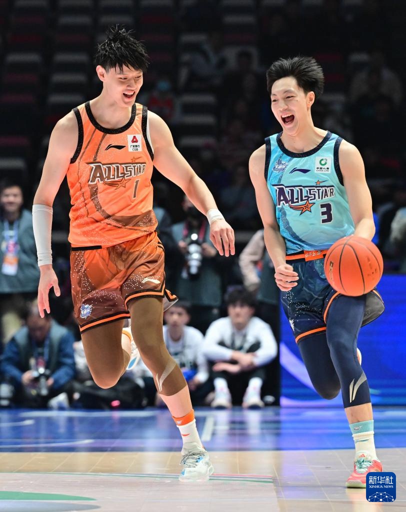 3月3日,南区明星队球员王哲林(右)带球突破。新华社记者 魏培全 摄