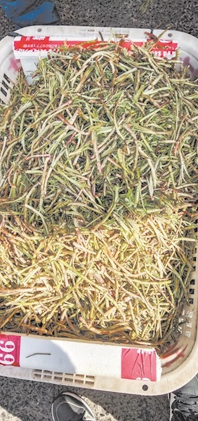 市场上的野生藜蒿 楚天都市报极目新闻记者曹磊摄
