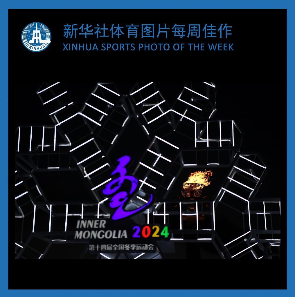 这是2月27日在内蒙古冰上运动训练中心拍摄的第十四届全国冬季运动会主火炬。