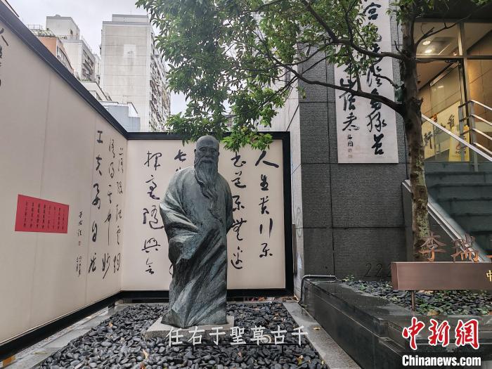 图为立于何创时书法艺术基金会楼旁的于右任像。2015年初,“创时讲堂”博物馆在台北成立,并推出首展于右任盛年碑派书法。 中新社记者 杨程晨 摄