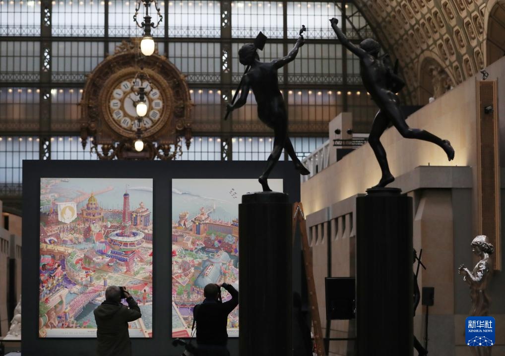 这是3月4日在法国巴黎奥赛博物馆拍摄的巴黎奥运会官方海报和残奥会官方海报。新华社记者 高静 摄