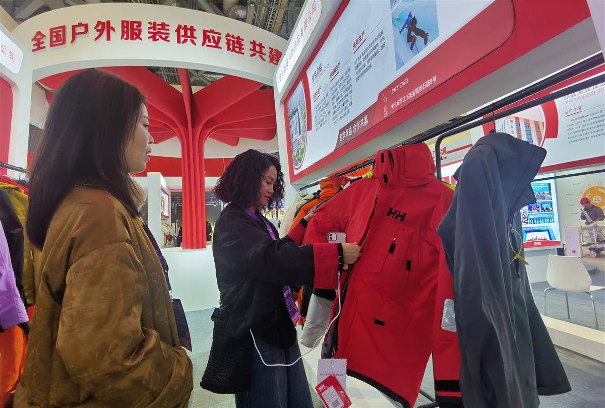 2023年,户外运动持续升温,户外服装成为潮流单品。此次展会上,不少湖北企业带来了户外服装产品和功能性纺织品。