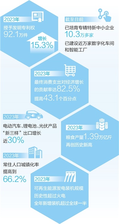 2023年,内需对我国经济增长的贡献率达到111.4%;社会消费品零售总额达47.1万亿元,总量创历史新高;最终消费支出对经济增长的贡献率达82.5%,消费对经济发展的基础性作用不断增强。