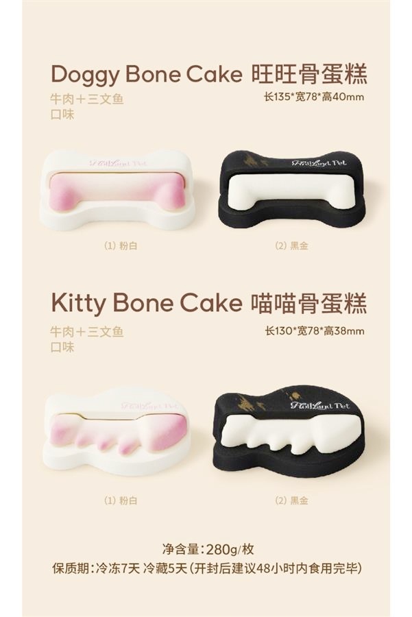 随后,记者登录其官方小程序,发现宠物蛋糕的价格从168元—218元不等,均价在200元左右。点开一款粉白配色的鱼骨造型的蛋糕,造型软萌让不少买家直呼可爱。这款牛肉、三文鱼口味的蛋糕,表皮添加了全脂羊奶粉、小麦粉和玉米粉等,内馅有熟牛肉、熟牛肝、熟鸡肝、熟鸭心等常见宠物食物。客服表示,6个月以下的幼宠不建议食用此款蛋糕,因个体差异,部分宠物可能对牛肉、三文鱼、虾、鸡蛋、玉米粉等食材有过敏反应,买家需仔细阅读配料表,确保无过敏原后再给宠物食用。