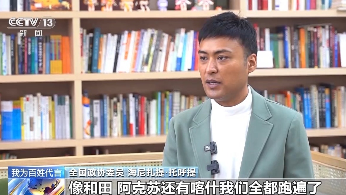 全国政协委员 海尼扎提·托呼提:我们去了很多地方,像和田、阿克苏还有喀什,我们全都跑遍了,希望能够通过更多新疆的中腰部的达人或者一些偏远地区的农牧民,让他们实现能够自己拍摄、自己剪辑,带动自己家乡的一些产品,能够帮助他们实现自主增收。