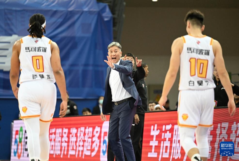3月8日,深圳马可波罗队主教练郑永刚(中)在场边指挥。新华社记者 赵子硕 摄