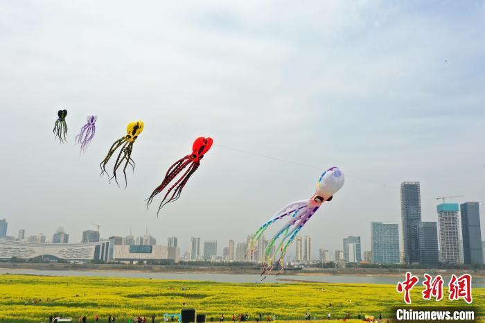 活动现场,市民游客还能看到由南昌市风筝协会带来的巨型风筝表演。刘占昆 摄