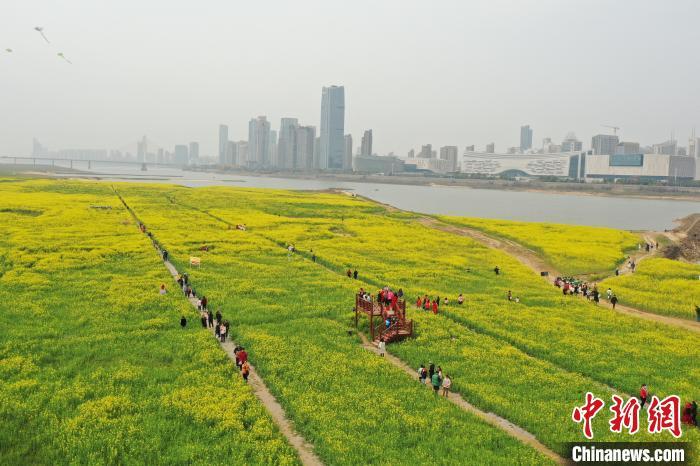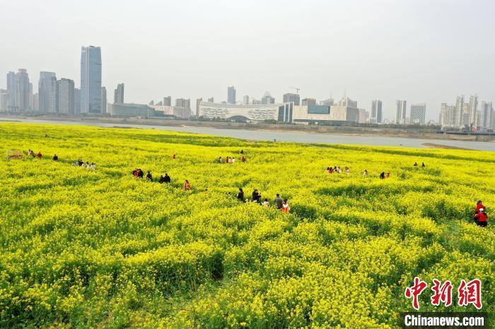 3月9日,在江西省南昌市东湖区扬子洲镇三联村裘家洲滩头,市民游客徜徉油菜花海,踏青赏春。当日,南昌市裘家洲金花节、风筝节、帐篷节三节同启,不少市民游客慕名而来,在这片赣江江心花海共同开启一场春日盛会。去冬今春以来,当地在扬子洲地区完成油菜种植1000余亩。如今,连片的油菜花竞相绽放、花香四溢,成为乡村旅游的网红打卡地。