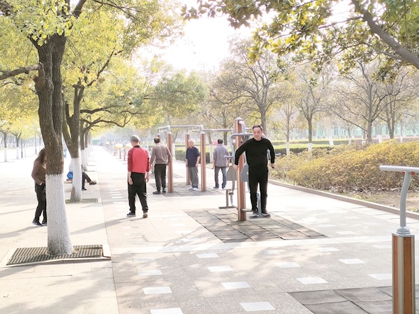 在汉口江滩健身的老年人 楚天都市报极目新闻记者陈倩摄