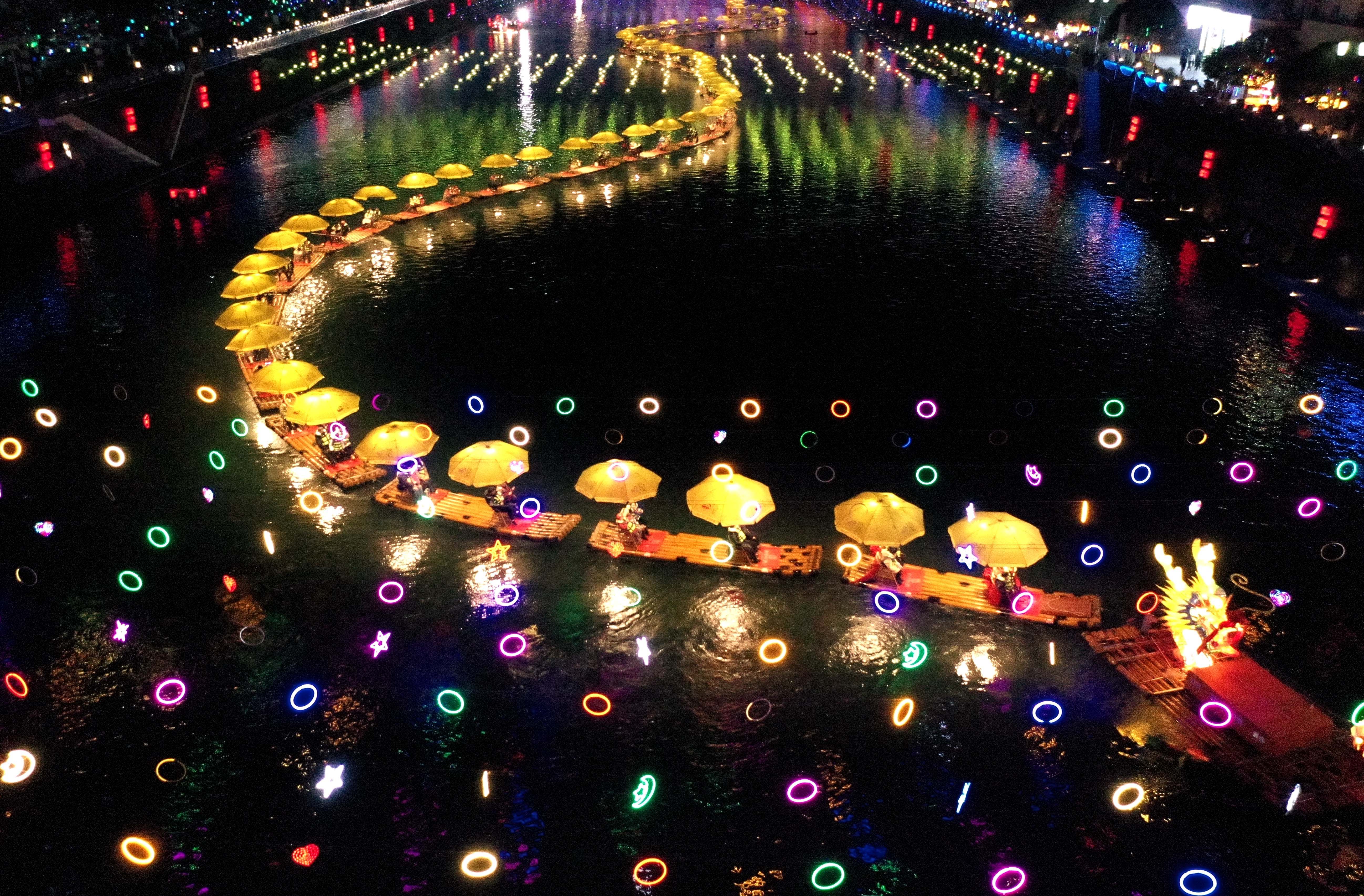 烤活鱼一条街,烟火气升腾,鱼肉酒飘香,南来北往客,一桌接一桌,翻台如流水;兴隆老街、墨达楼前、文澜桥上,旅拍打卡,尽显时尚;寨遇广场,篝火熊熊,音乐劲爆,万人“蹦仙迪”,场面“嗨翻天”……老少咸宜、动中有静,让近者悦远者来。