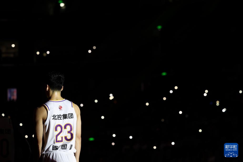 3月10日,北京控股队球员陈国豪在出场仪式上。新华社记者 胡虎虎 摄