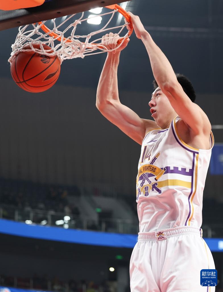 3月10日,北京控股队球员王少杰在比赛中扣篮。新华社记者 胡虎虎 摄