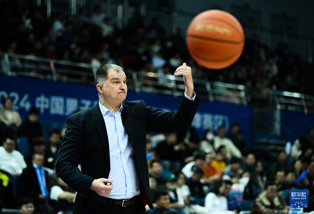 3月10日,四川金强队主教练维琴蒂奇在比赛中指挥。新华社记者 孙凡越 摄