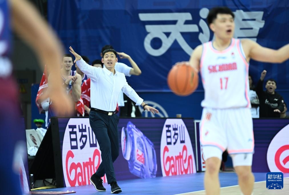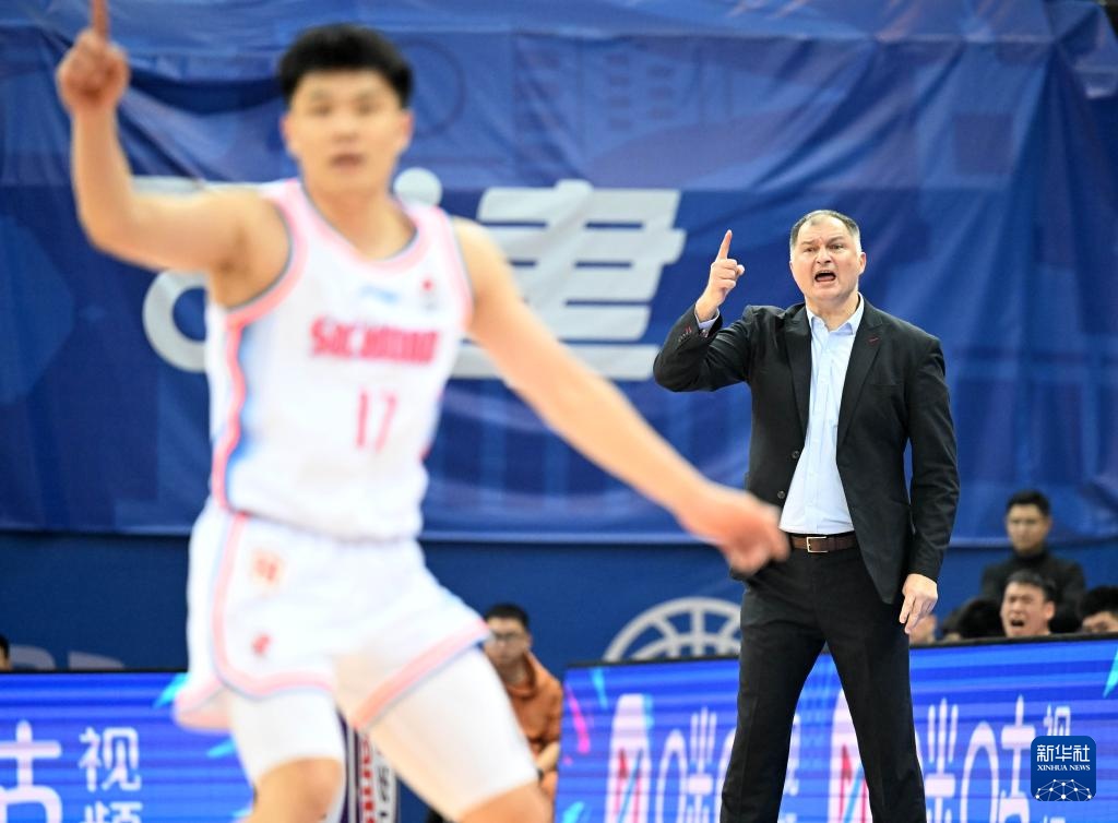 3月10日,四川金强队主教练维琴蒂奇(右)在比赛场边指挥。新华社记者 赵子硕 摄