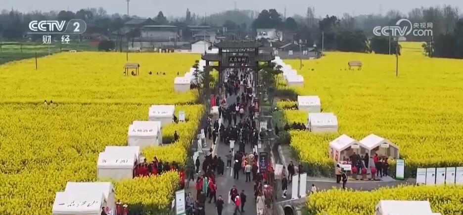 除了“花田火锅”,在以油菜花田为背景的乡村道路上,各类装满当地特色农产品的摊位依次摆开。游客们迎着花香赶大集,带走春日特有的伴手礼。