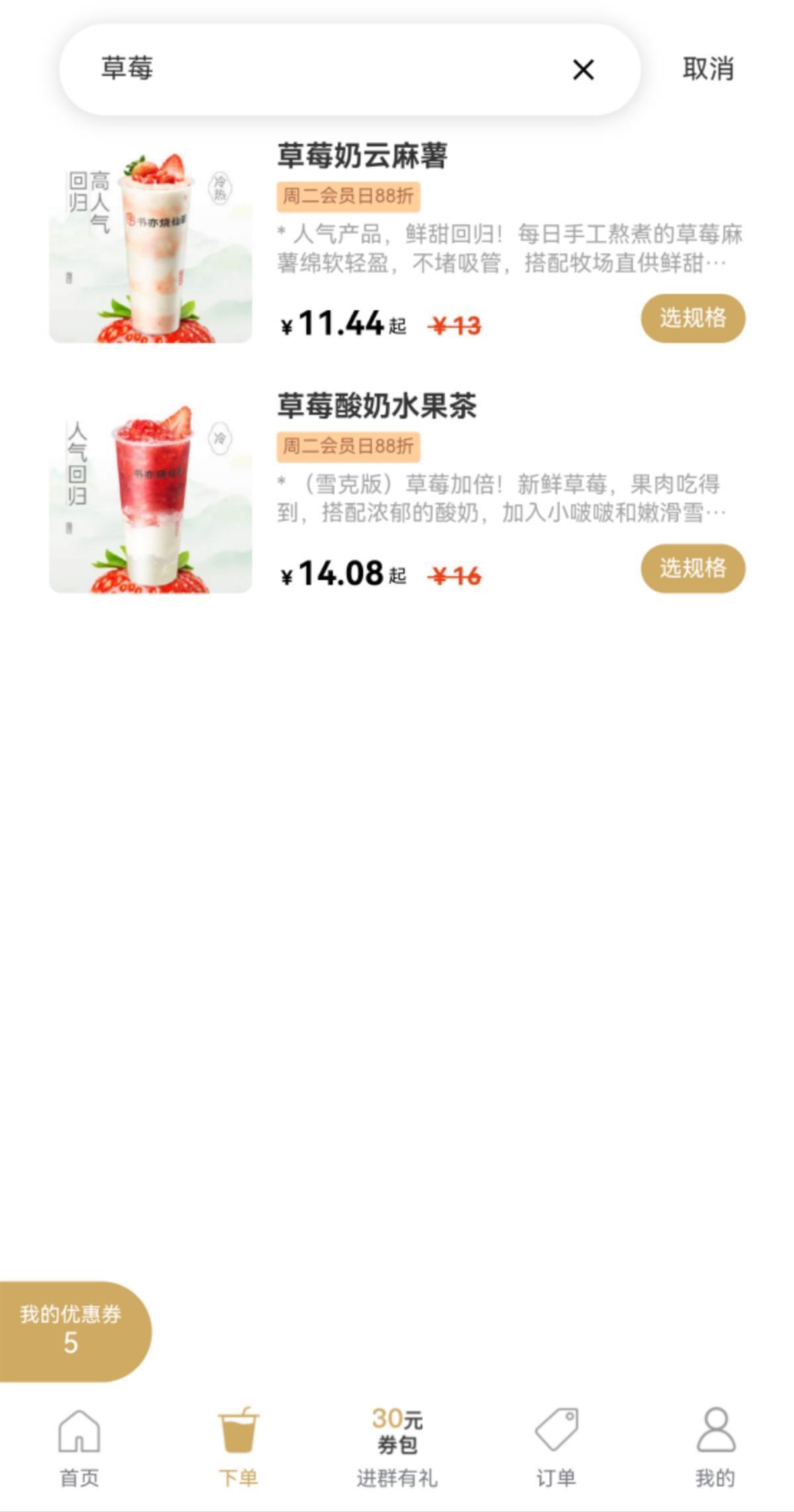 3月12日晚,极目新闻记者在武汉中南路街石牌岭路打开书亦烧仙草微信小程序,在武汉石牌岭路店未找到草莓啵啵酸奶这款饮品。