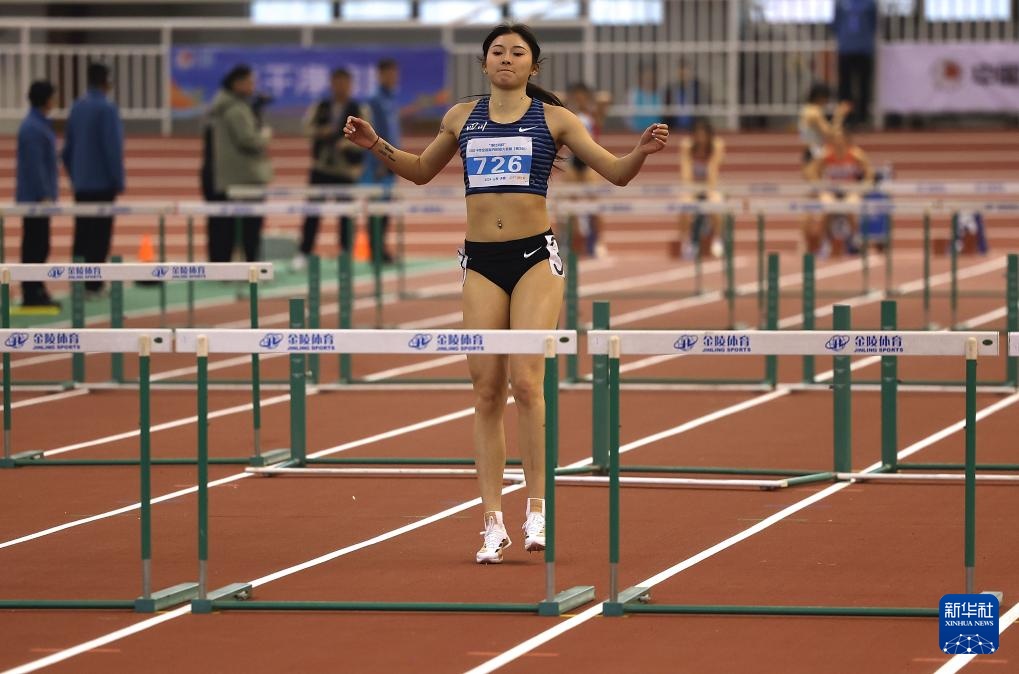 3月13日,四川队选手吴艳妮在女子60米栏决赛前热身。她以8秒11的成绩获得冠军。新华社记者 廖宇杰 摄