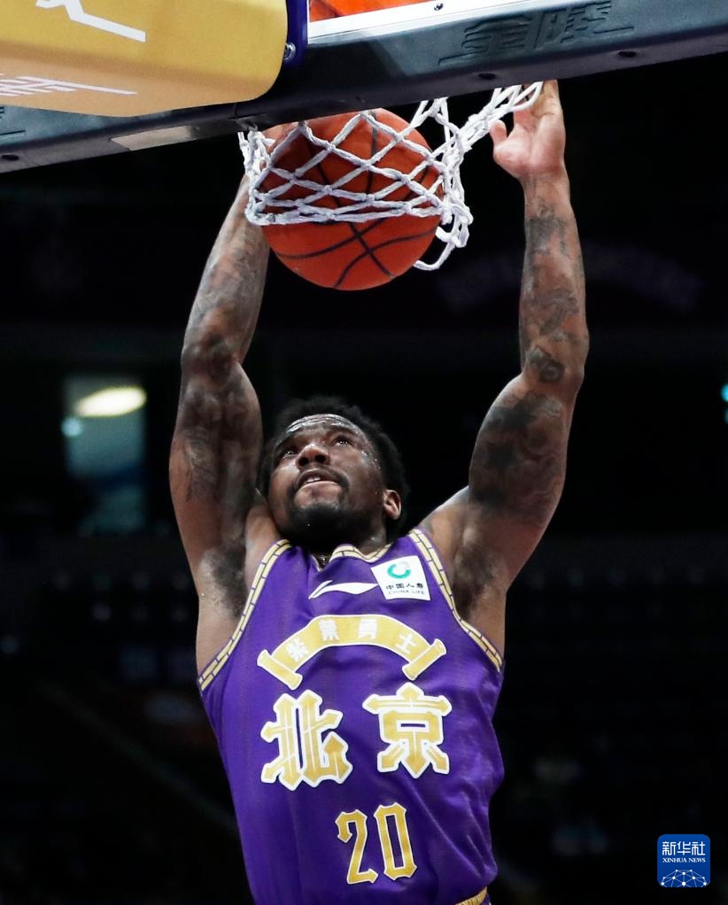 3月13日,北京控股队球员费尔德在比赛中扣篮。新华社记者 雒圆 摄