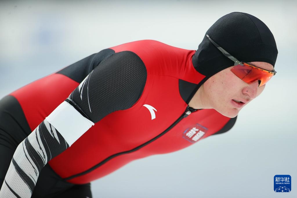 3月14日,辽宁省冬季运动管理中心选手叶尔加那提·拜山在男子全能5000米比赛中。他以6分43秒06的成绩获得该项目第一名。新华社记者 丁旭 摄