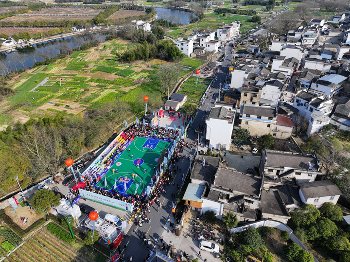 西溪南镇的篮球场地(无人机照片) 新华社记者 杜宇 摄